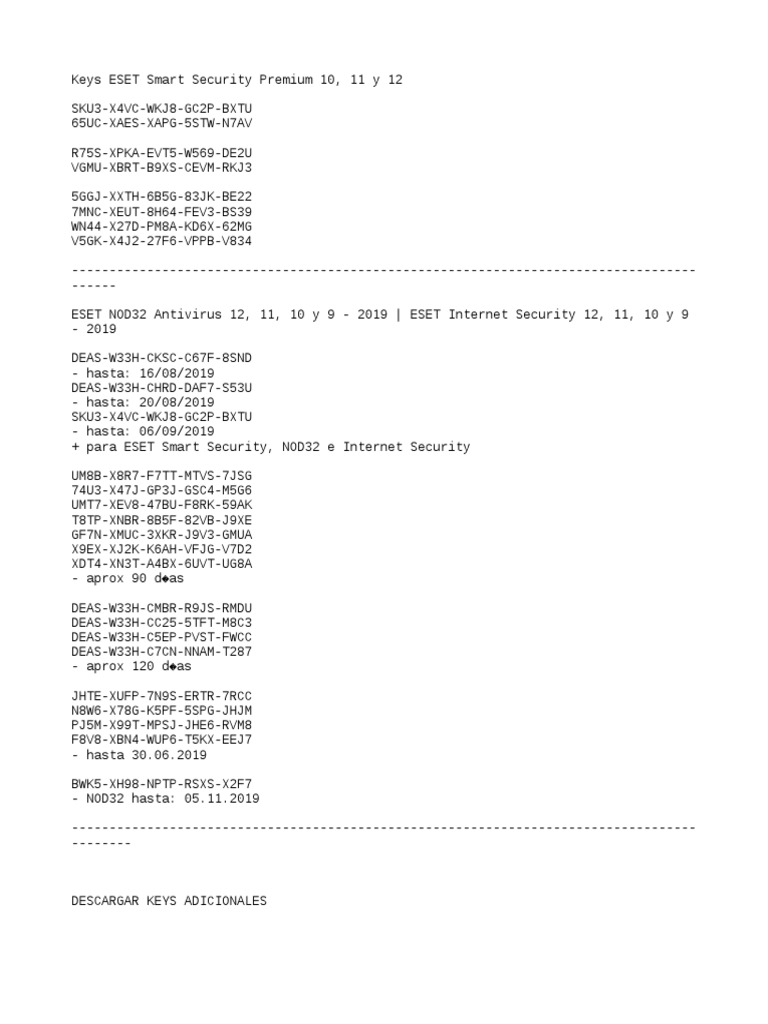 LICENCIAS ESET NOD32 y Smart Security Premium (Mayo 2019) | PDF