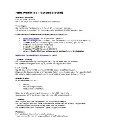 Hoe werkt de postcodeloterij | PDF
